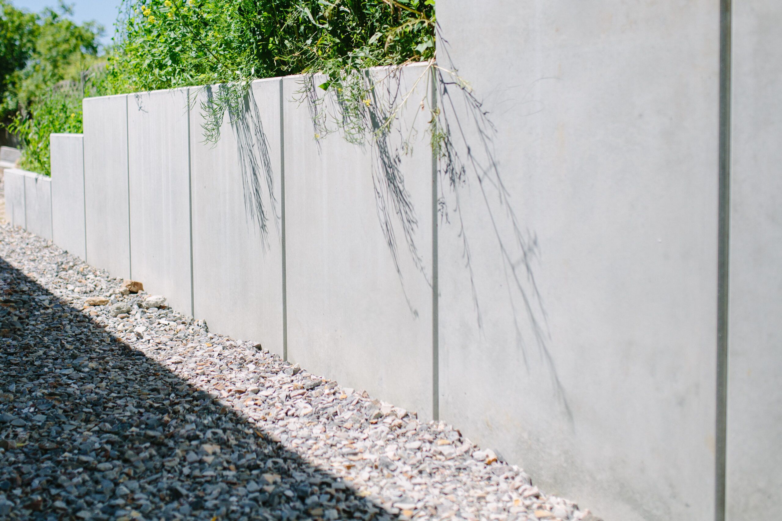 Prefabrykowane mury oporowe dostępne są w dwóch wariantach wykończenia betonu w naturalnym, szarym kolorze.